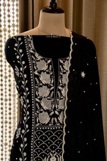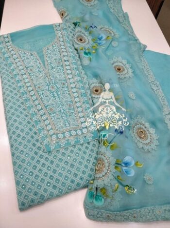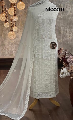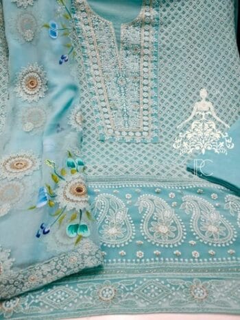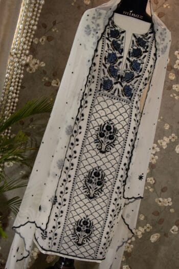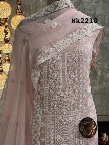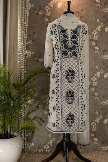 - Georgette embroidered Luckhnavi kurta with pearl work $130.00