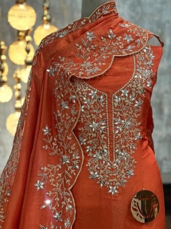 Full Embroidered Bandhni Printed Tissue Shirt With Kundan , Cut-Dana & Sequins WorkPrinted Tissue Dupatta With Gota Detailing