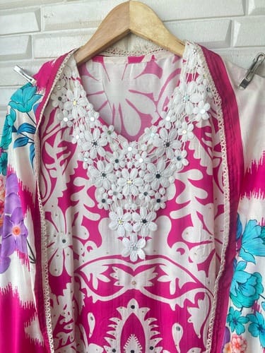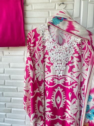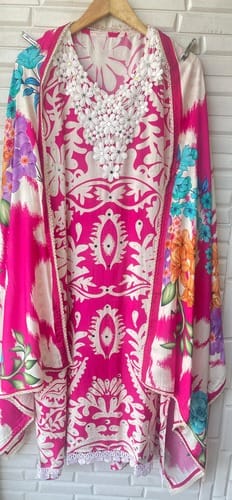 Be the first to review “Muslin printed fabric unstitched shirt with mirror work highlighting and crosia lace” Cancel reply