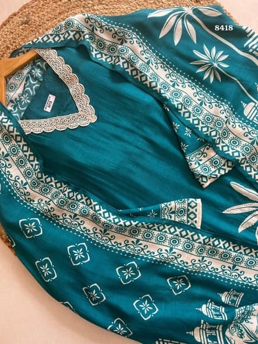 Muslin printed fabric unstitched shirt with mirror work highlighting and crosia lace