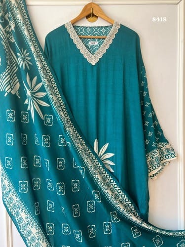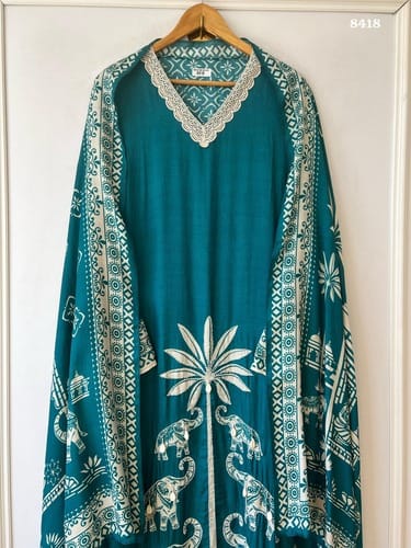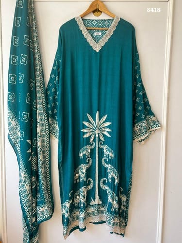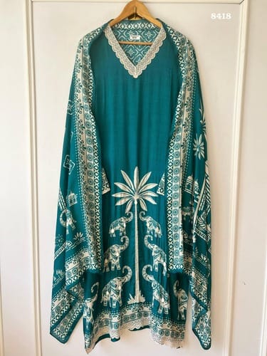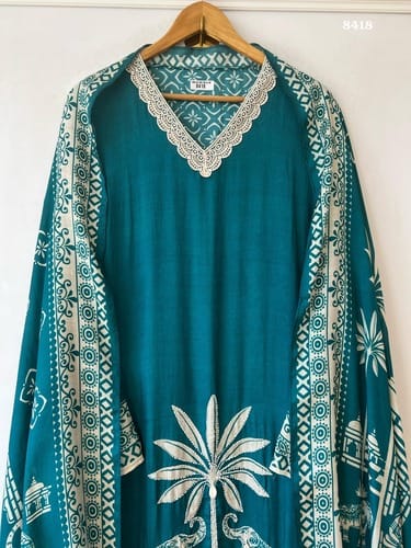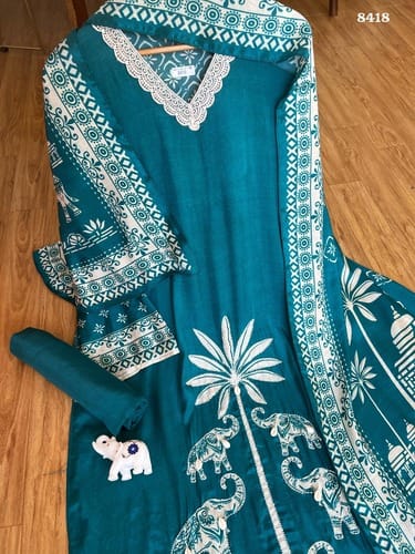 Shirt – Pure Muslin semi stitched shirt Printed with beautiful beads handwork & lace works